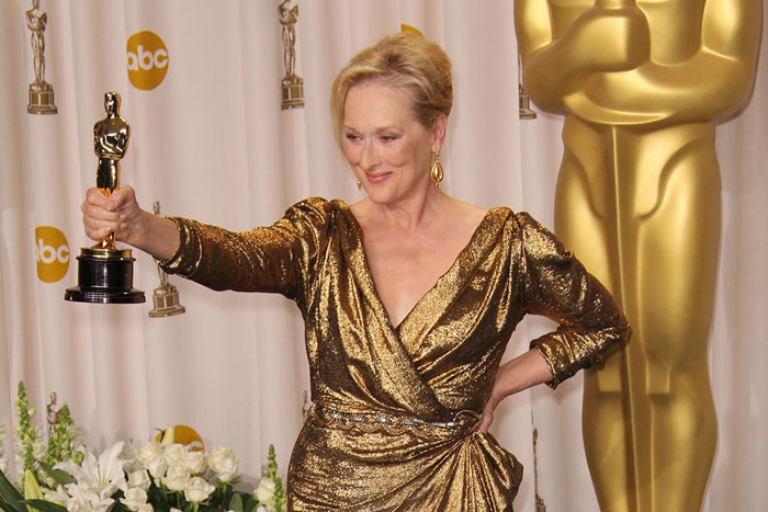 Cher has worn several famous Oscars outfits during her career. From the gold-bejewelled Bob Mackie two-piece set she wore to the 1973 ceremony to the opulent black gown she wore to the 1986 ceremony (also a Mackie creation), which seemed to be more of an excuse for her to don that matching, she's always walked the red carpet in something truly memorable. However, I believe the 1974 Mackie-designed style has received less attention than it deserves. It has a watercolour-esque print of pastel hues on a flattering tube top, paired with a flowing skirt in the same colour scheme. Adding matching makeup, a glittery floral neckpiece, and a tiara completed Cher's ensemble.